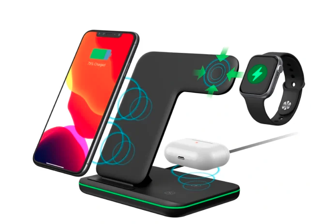 • 【Ultra Safe 3 in 1 Charging Station】: Fast wireless charging station design. With over-current protection, over-voltage protection and over-temperature protection as well as foreign object detection function. Reasonable internal circuit design can prevent overcharge damage to the equipment battery and ensure safe charging of the device.(Note: remove the magnetic or metal accessories from the phone case when charging.)