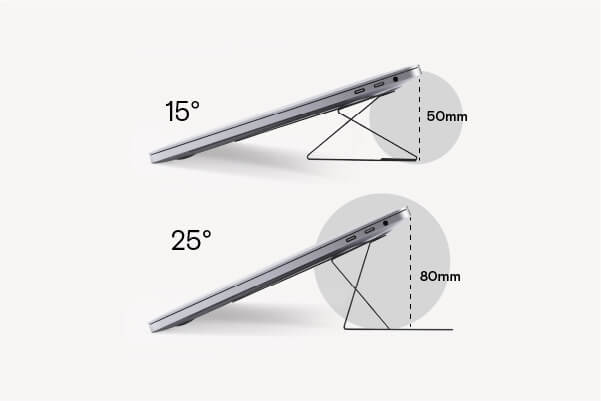 Equipped with two elevation angles, it’s easy to find the ideal height and comfort. The high-lifting mode optimizes your sitting posture with 3 inches elevation to your screen. The low-lifting mode rises 2 inches to perfectly adapt to standing desks.