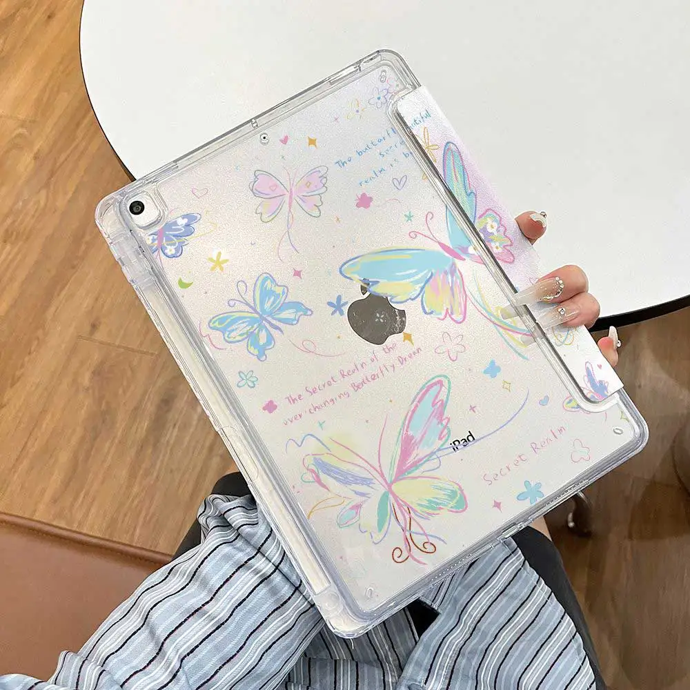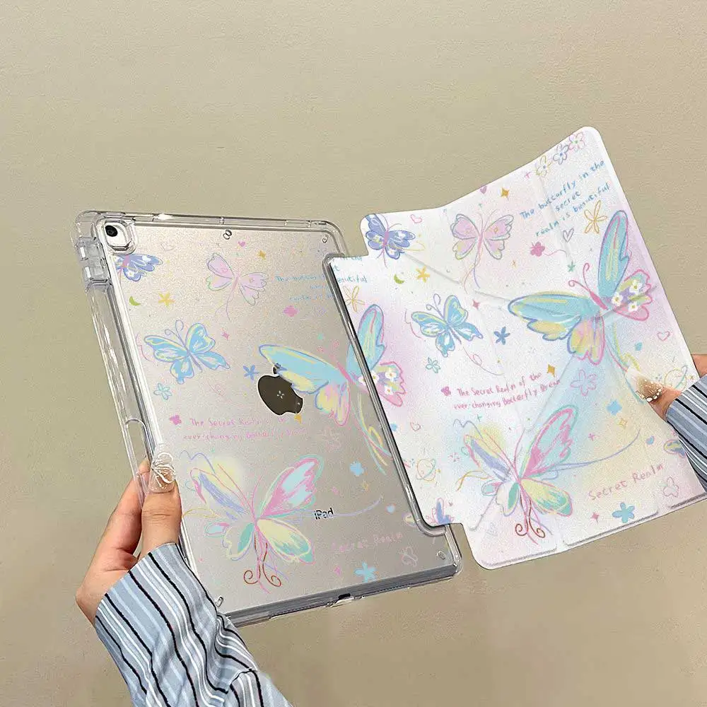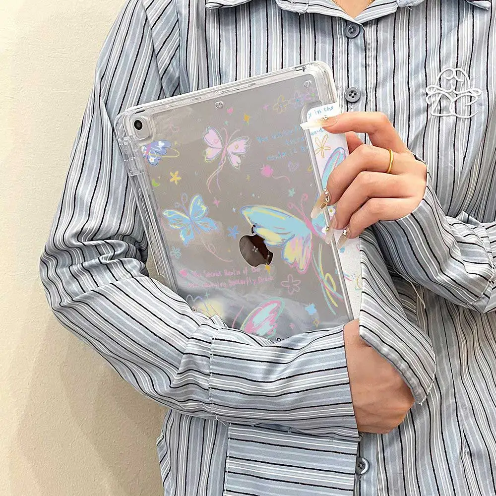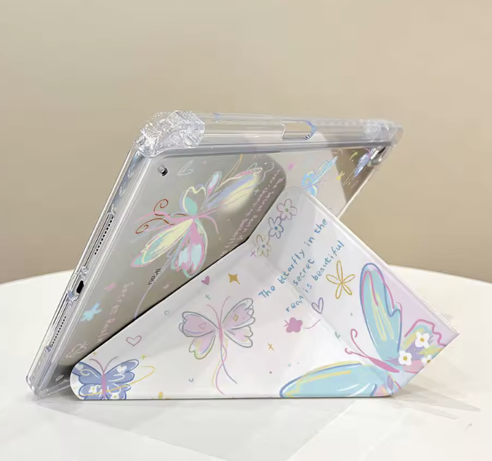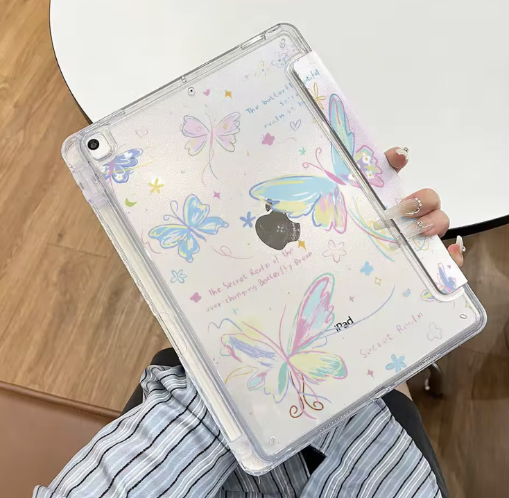 الغطاء الشفاف يُبرز تصميم الـiPad الأصلي بينما تضيف الفراشات المتدرجة لمسة من الأنوثة والتميز.