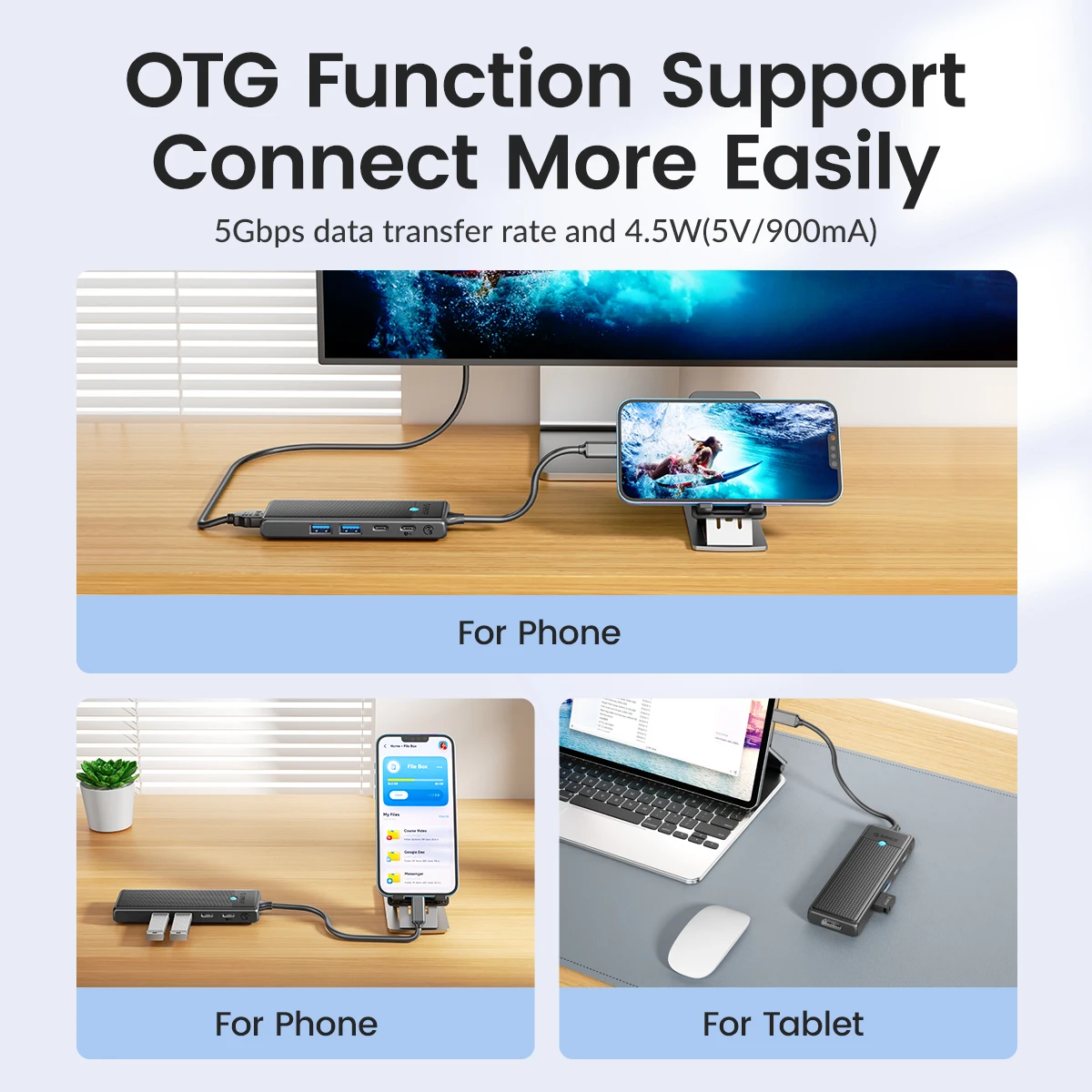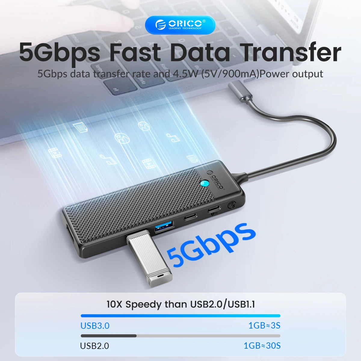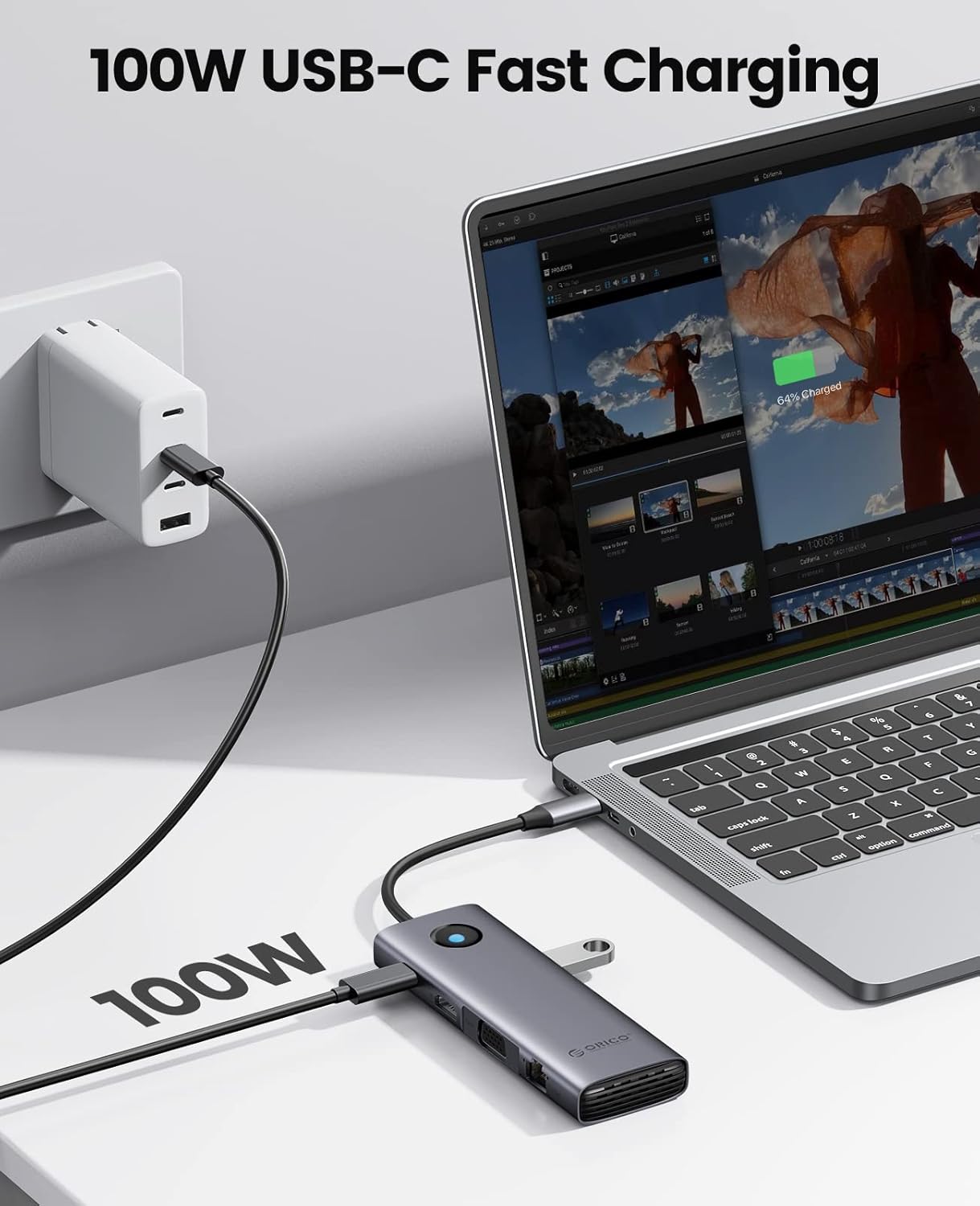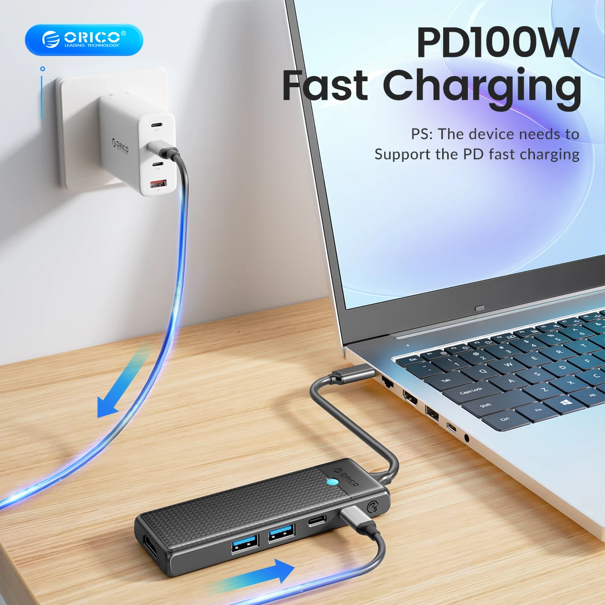 Never compromise between connectivity and charging. With up to 100W Power Delivery pass-through, this ORICO USB-C hub keeps your laptop powered while you work, stream, or create. Enjoy reliable, efficient charging that supports demanding workflows, ensuring your device stays energized even during intensive tasks.