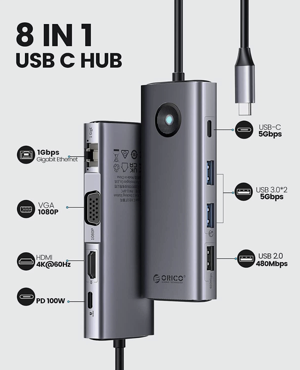 ORICO Type-C PD 100W 8 in 1 Hub Dock Station