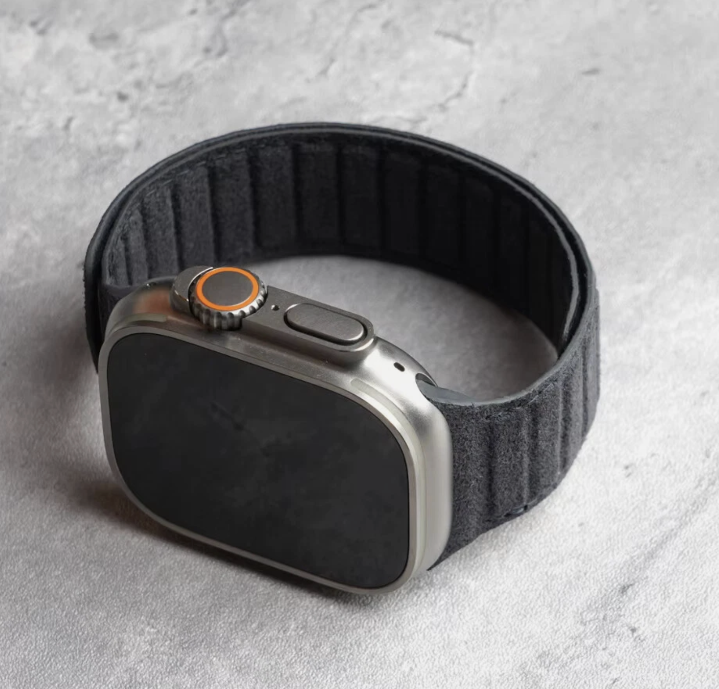 حوّل ساعة Apple Watch الخاصة بك إلى قطعة أنيقة مع سوار YMW المغناطيسي المصنوع من خامة ALCANTARA® الفاخرة. يتميز هذا السوار بملمس ناعم شبيه بالجلد السويدي مع خفة وزن وتهوية ممتازة، ما يجعله مثالياً للاستخدام اليومي الطويل دون تهيّج أو انزعاج. إنه الخيار المثالي لمن يبحث عن مزيج متوازن بين الراحة العملية والمظهر الراقي لساعة Apple Watch مقاس 45/46 مم.