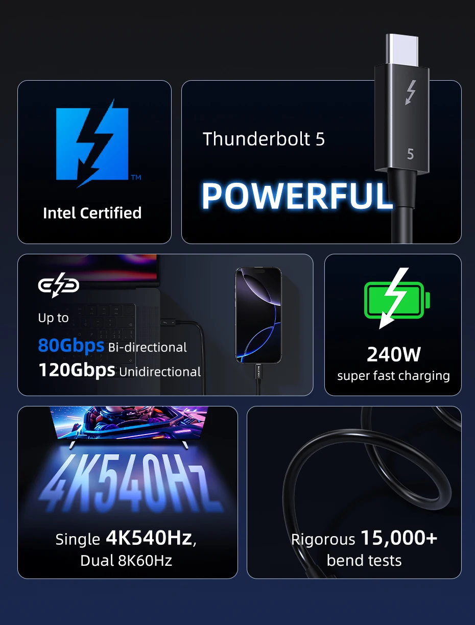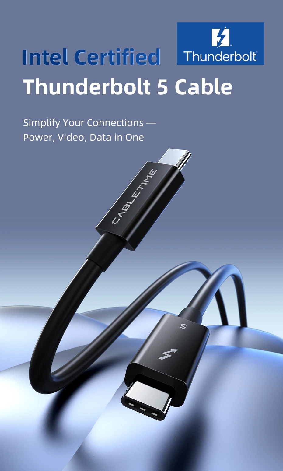 كابل Thunderbolt 5 معتمد من Intel وسرعة بيانات تصل إلى 120Gbps