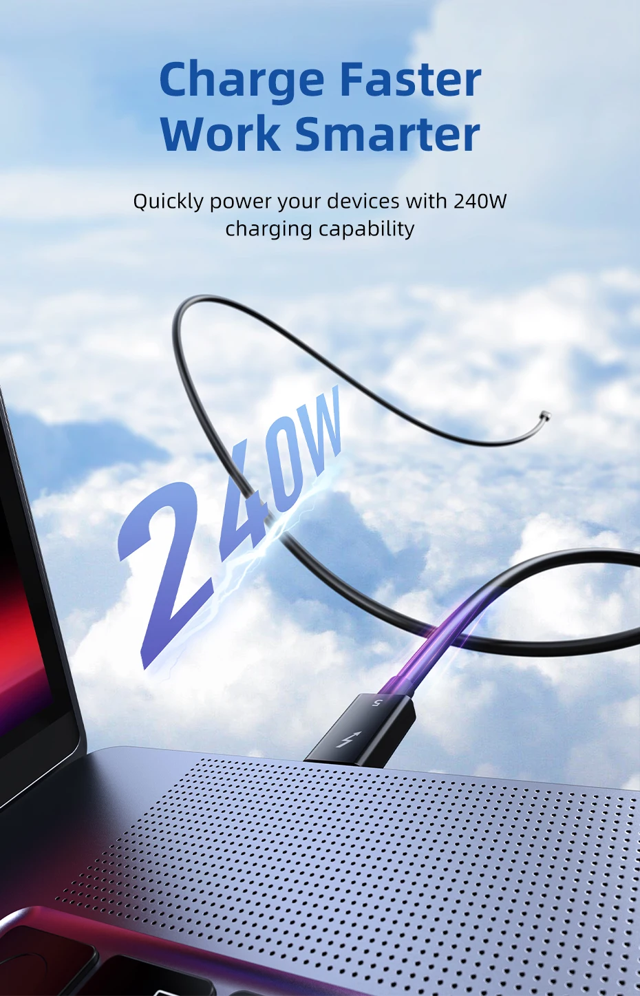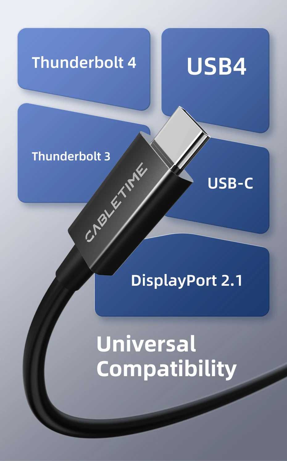 CableTime Thunderbolt 5 / USB C 120Gbps PD 240W 8k 60HZ 0.8m - Black